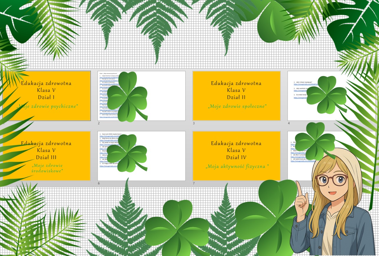 Duży (całoroczny) zestaw na lekcje do edukacji zdrowotnej w klasie 5. Zestaw zawiera prezentacje multimedialne (treści z lekcji oraz pomysł na lekcję krok po kroku) w pdf. Edukacja zdrowotna. Klasa 5.