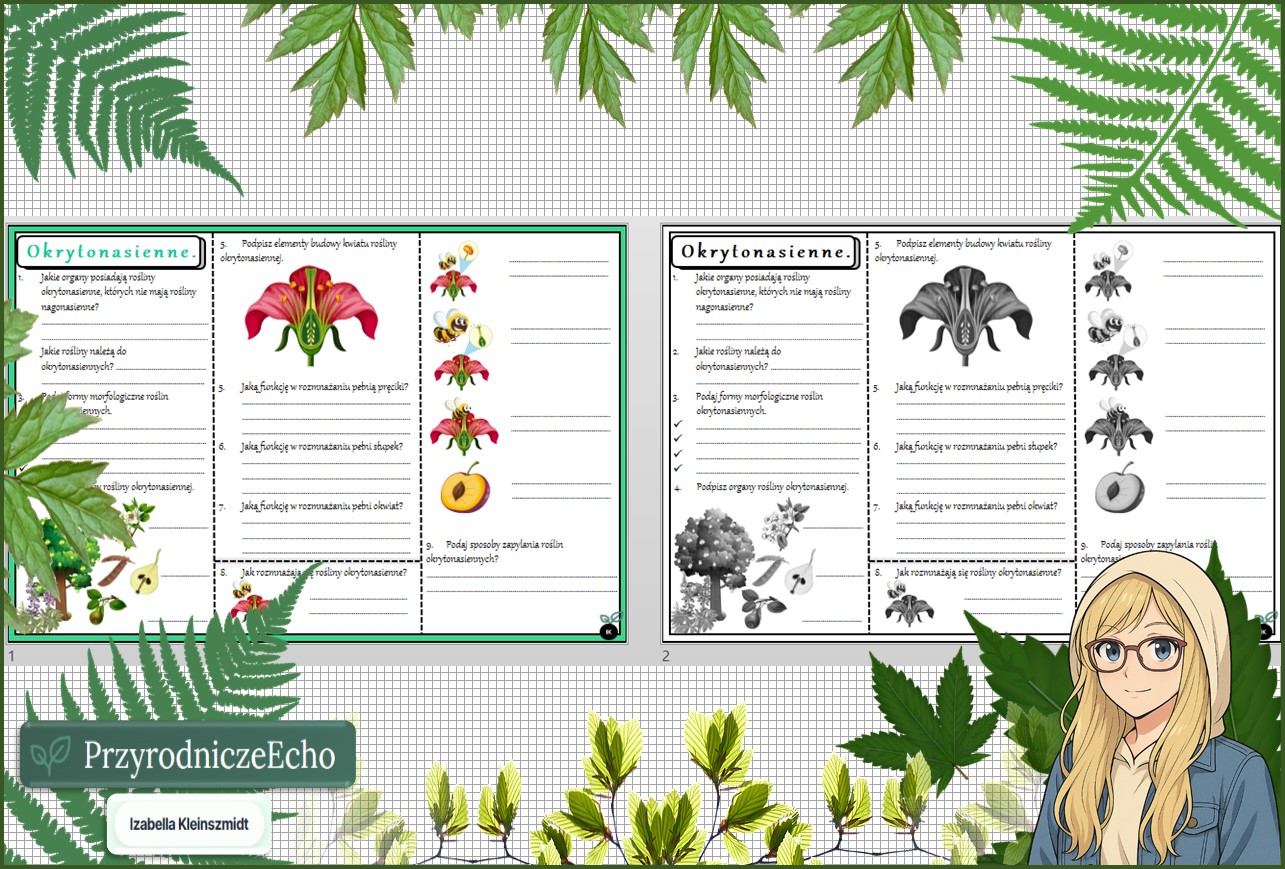 Karta pracy „Okrytonasienne” w pdf. Biologia. Klasa 5. Dział „Różnorodność roślin”.