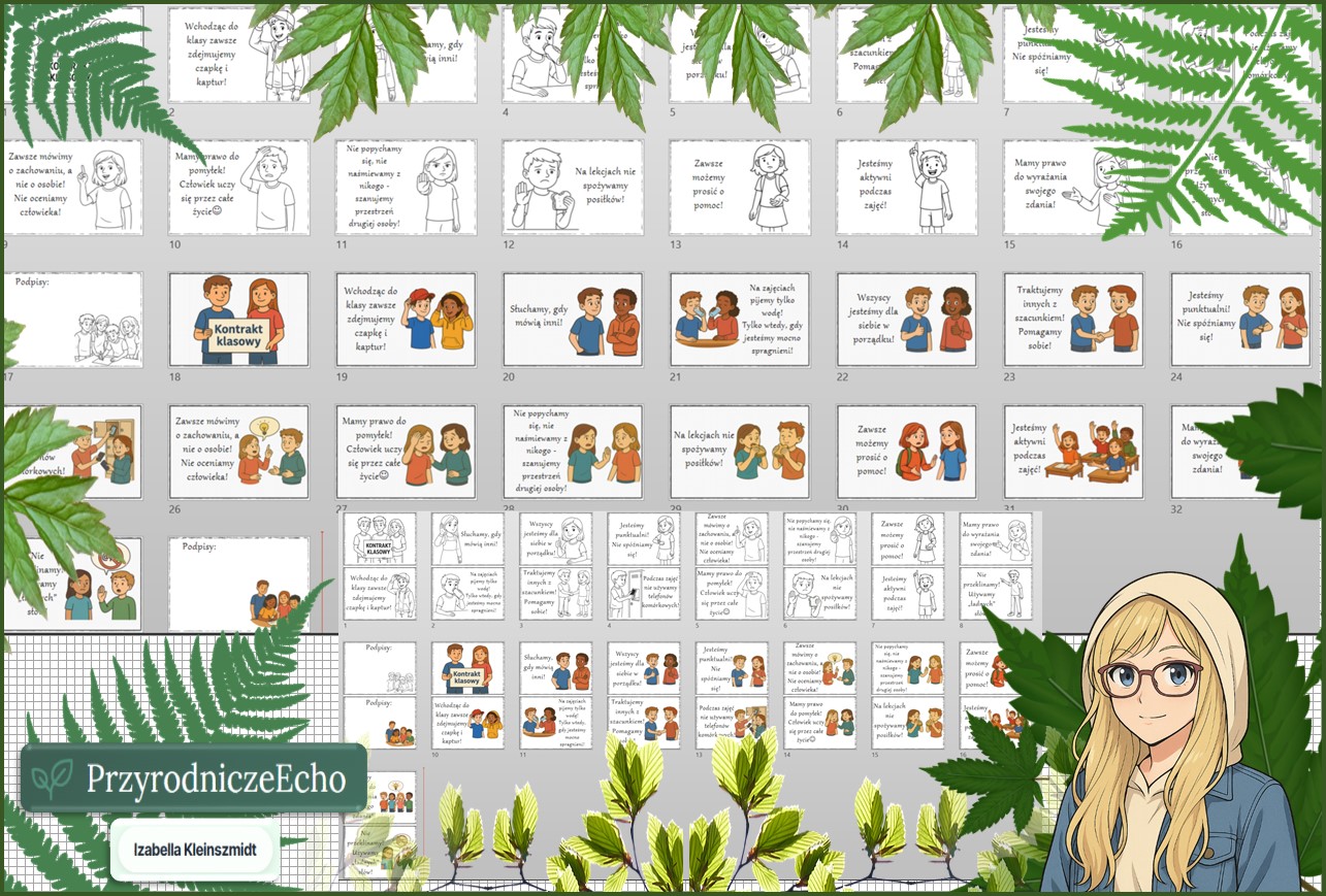 Zapraszam do zakupu kontraktu klasowego w dwóch wersjach kolorowej i czarno-białej (na całej kartce i połowie) – do powieszenia w klasie na gazetce.