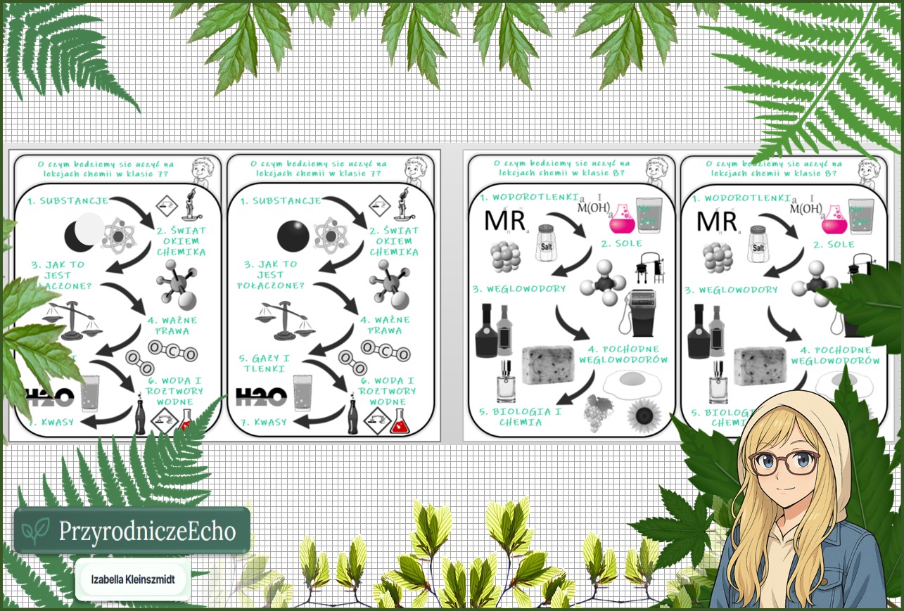 O czym będziemy się uczyć na lekcjach chemii w klasach 7-8? – wklejki do zeszytu. Materiał w pdf.
