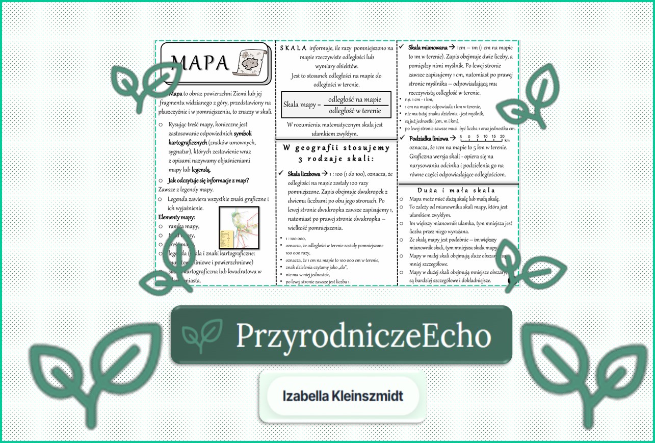 Sketchnotka/notatka „Mapa i skala” w pdf. Geografia. Klasa 5. Dział „Mapa Polski”.